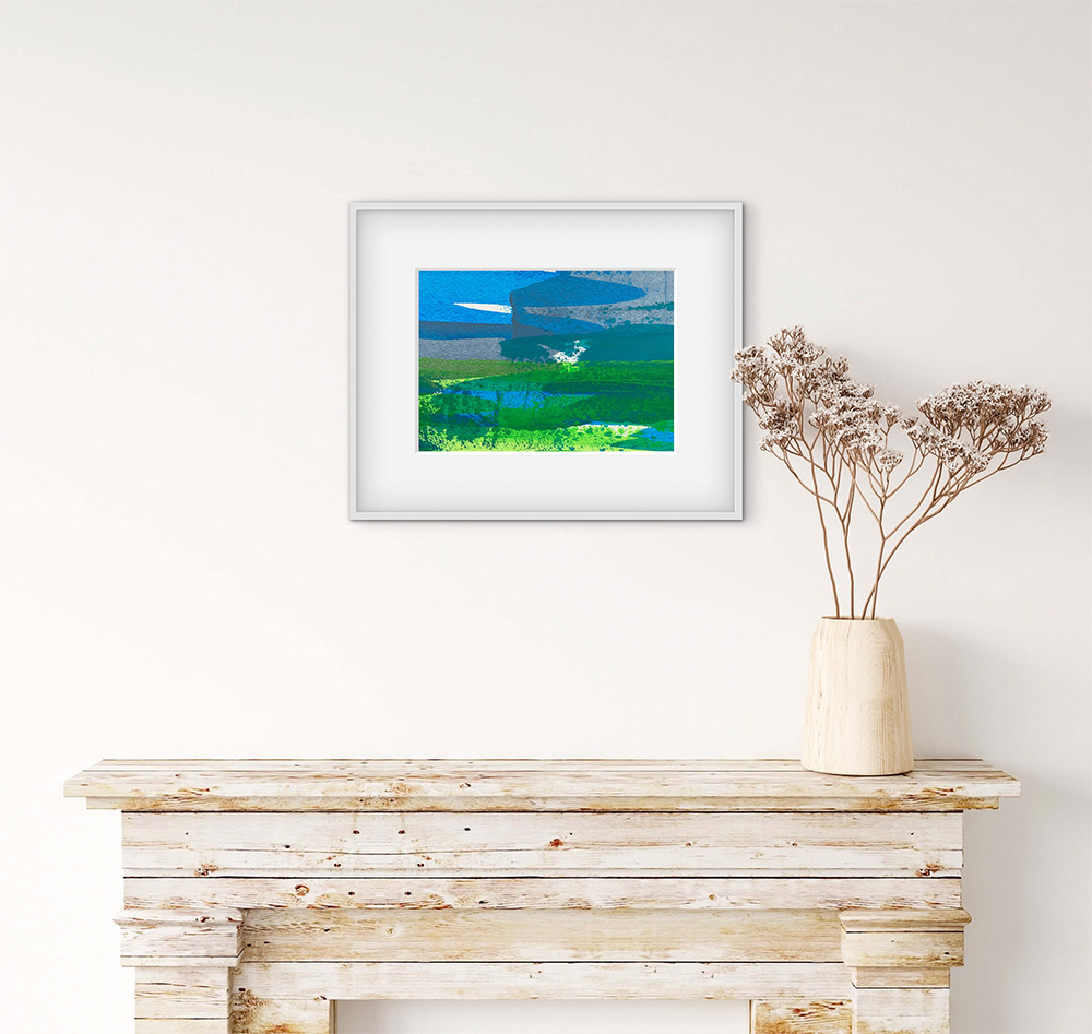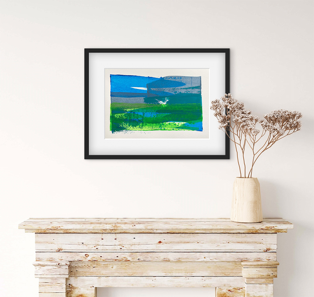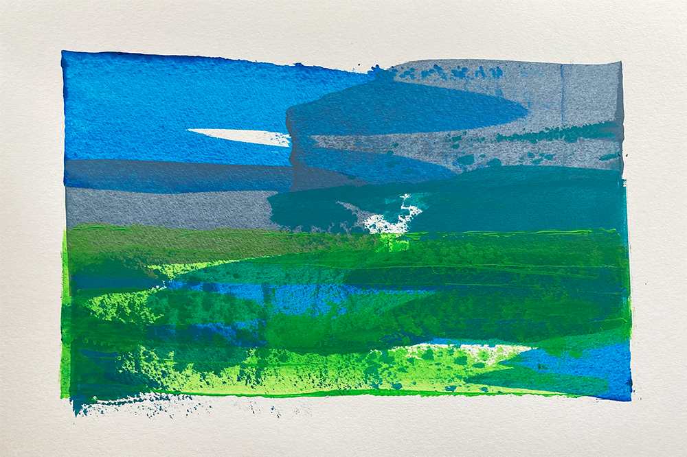 Incoming – a painting on paper. Working on paper is where my mojo gets fed and where I am most free. The page first has a loosely painted coat of Gesso and left to dry before painting. This adds a slightly mellow creamy white base note to the painting and it’s loose edges add to the energy of the painting (see pic).