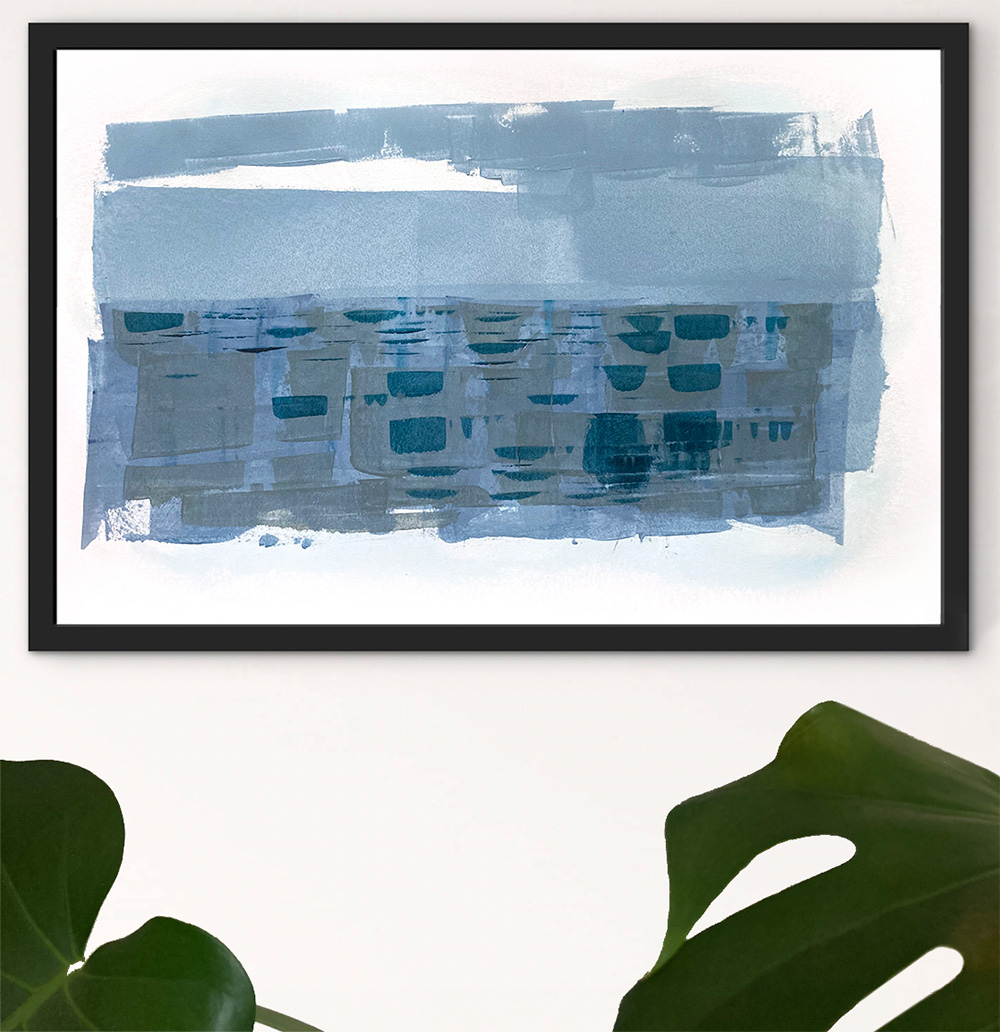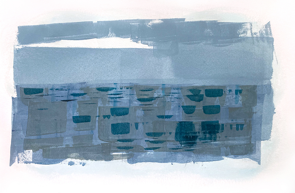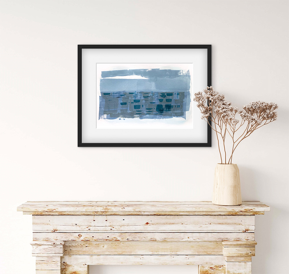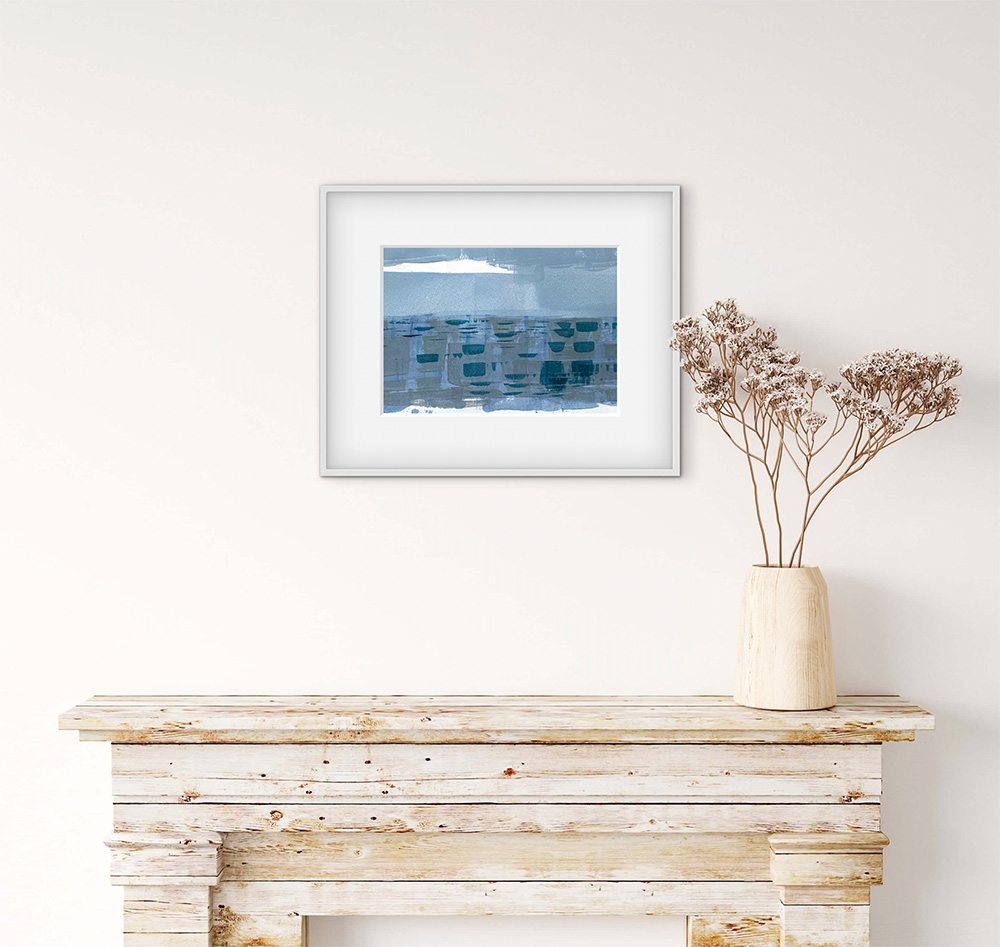 ‘Overy’ – is an Old English word meaning ‘over the water’. This isn’t a painting of Burnham Overy Staithe (Staithe is an Old English word meaning ‘landing place’) the Norfolk town that now lies a mile or so inland but it was once a busy port on the River Burn, but rather a celebration of ‘Overy’, another lovely Old English word!