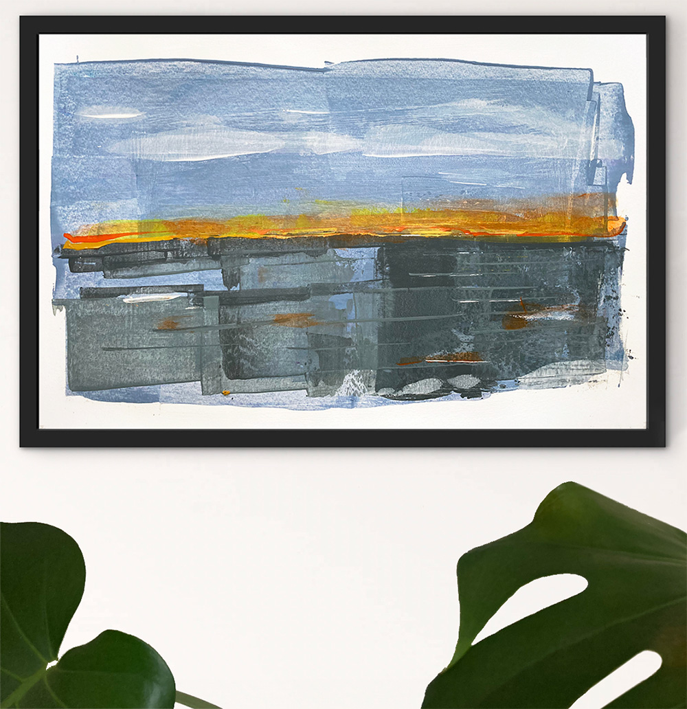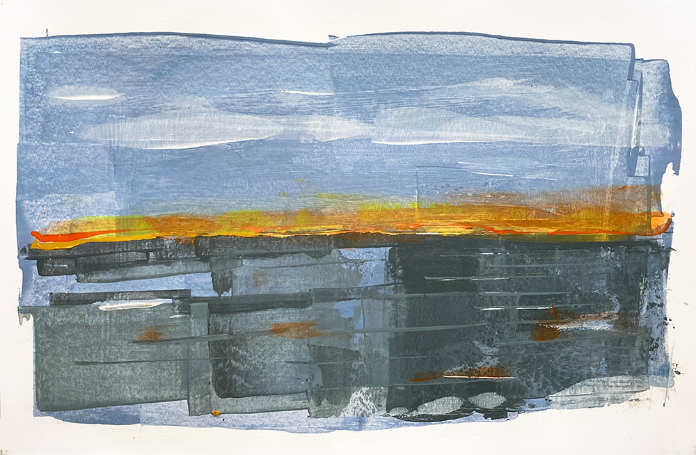 Reflect is exploring bold vertical ‘reflection’ marks juxtaposed with an orange and blue horizon.