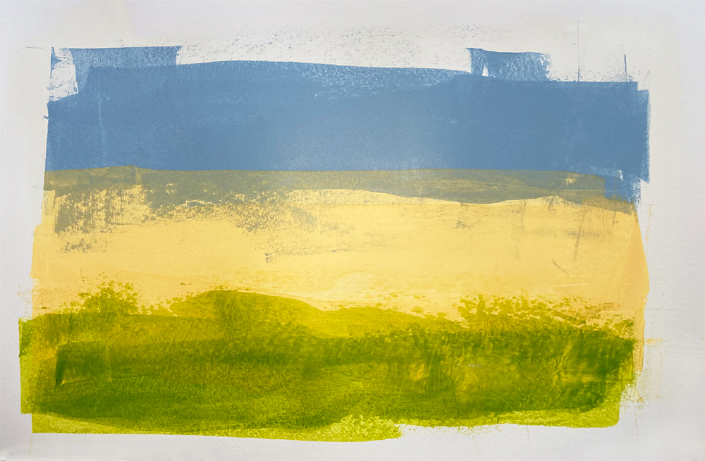 Wells – a painting from the sketchbook. The sketchbook is where my mojo gets fed and where I am most free. The page first has a loosely painted coat of Gesso and left to dry before painting. This adds a slightly mellow creamy white base note to the painting and it’s loose edges add to the energy of the painting (see pic).